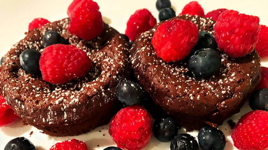 - Coat the inside of the ramekins with cocoa powder and tap out the excess. In a double boiler melt the dark chocolate and coconut oil until smooth.